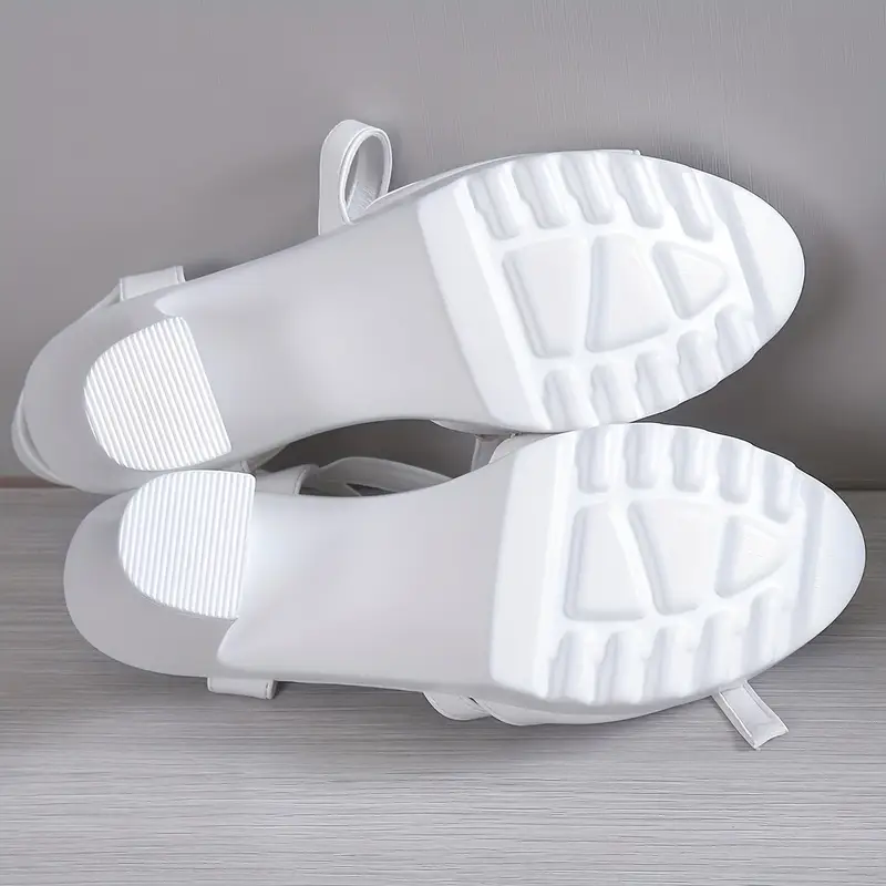 White Open Toe with Buckle Strap, Comfortable PU Sole, Stylish High Heel Sandals for Casual Wear