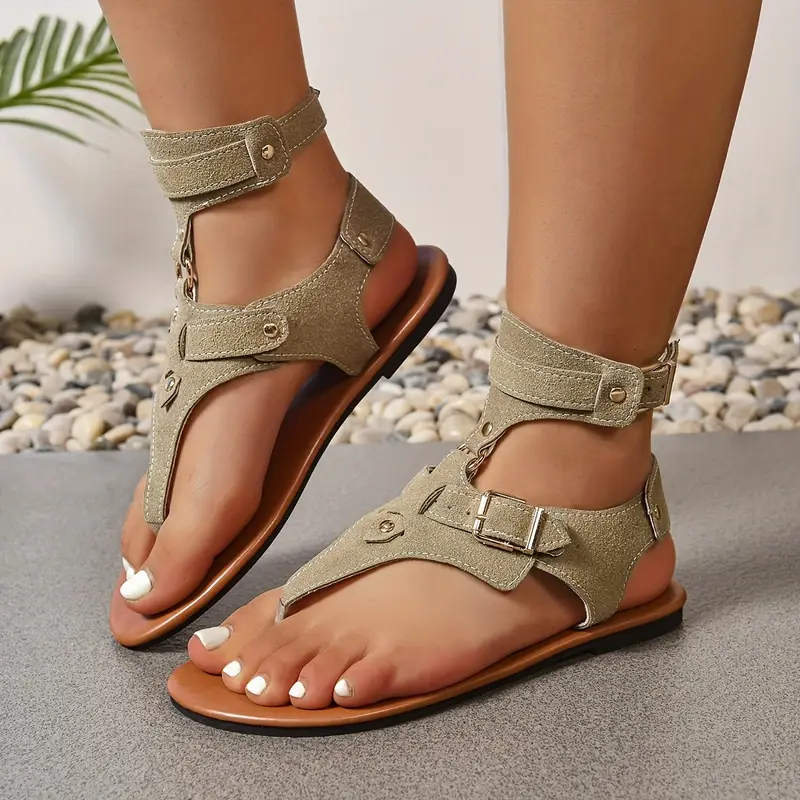 ₦ 23,000.00Women's Retro Roman Sandals - Flat Heel Open-Toe Summer Shoes with Adjustable Buckle Straps, Soft Synthetic Cover & Rubber Sole, Casual Chic Beige Footwear for Beach, Outings, Daily Wear