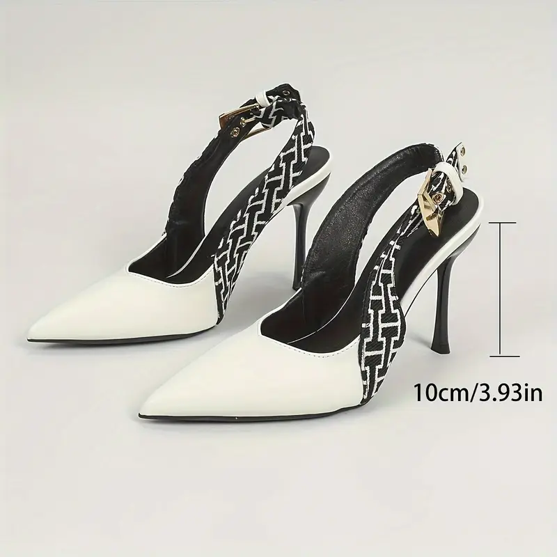 Elegant Pointed-Toe Stiletto High Heels with Ankle Strap & Metallic Buckle