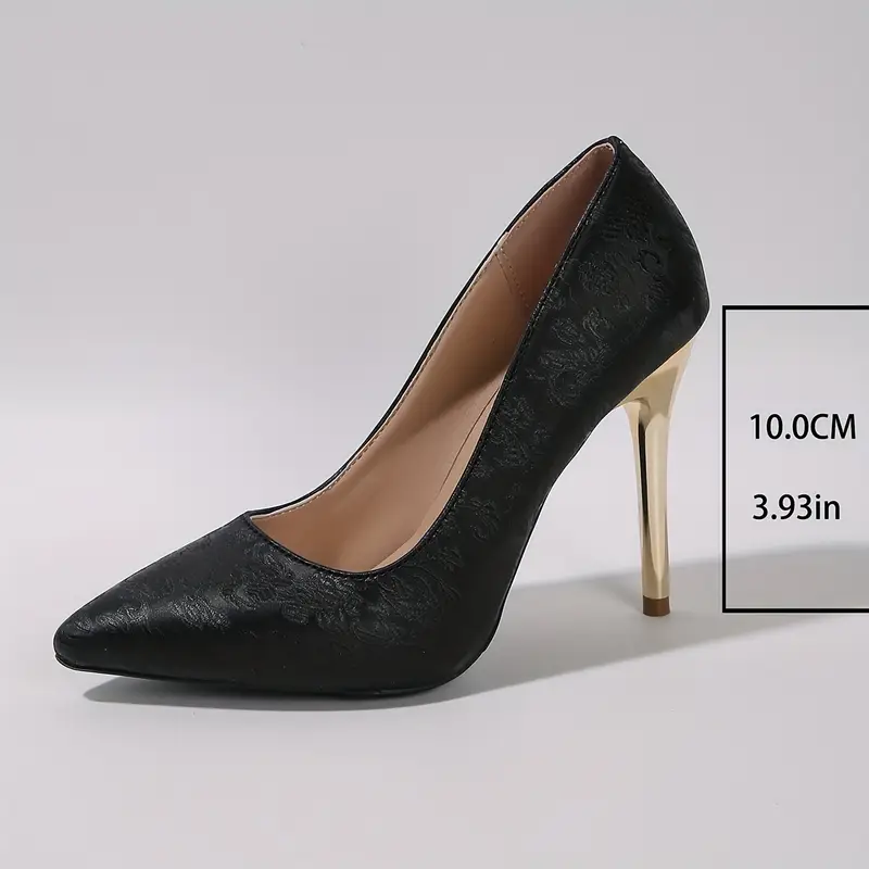 Women's Elegant Floral Vintage Pumps, Shallow Mouth Slip On Party High Heels, Point Toe Banquet Shoes